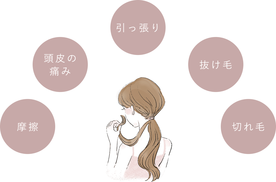 安価なヘアゴムで結ぶと髪に 大ダメージ!