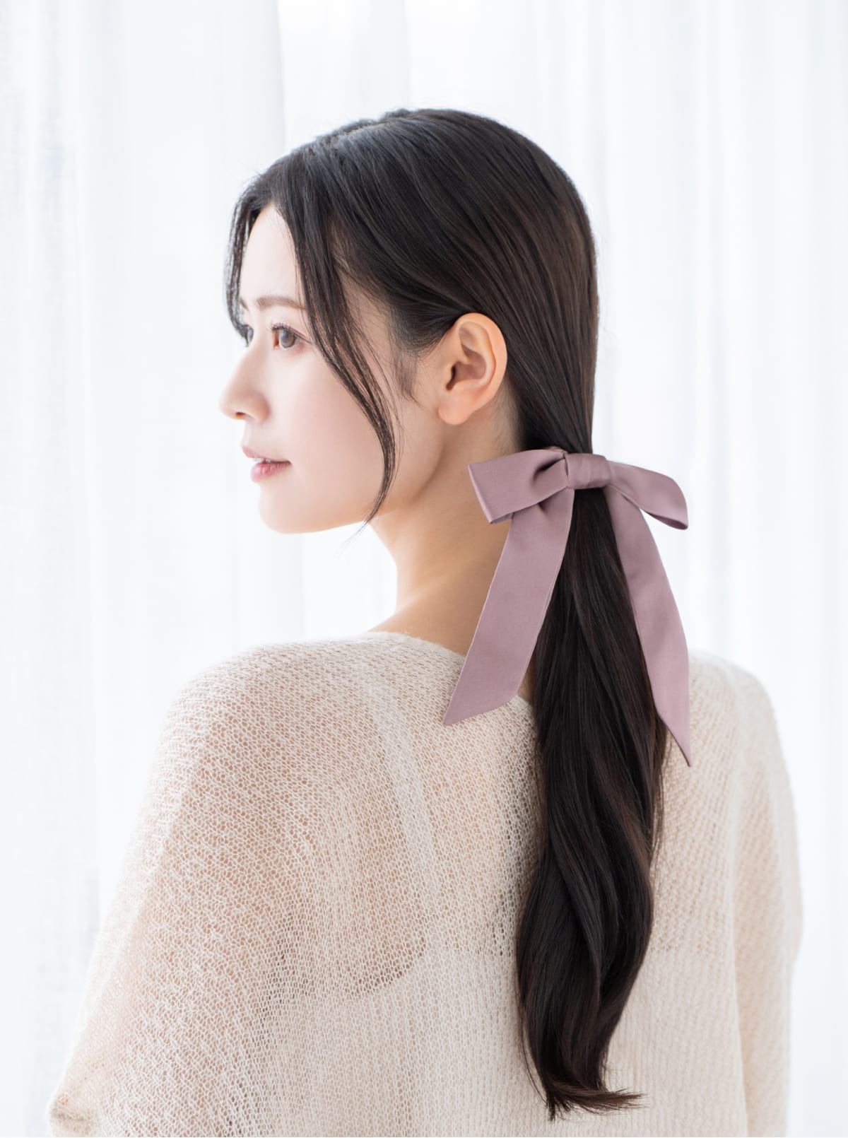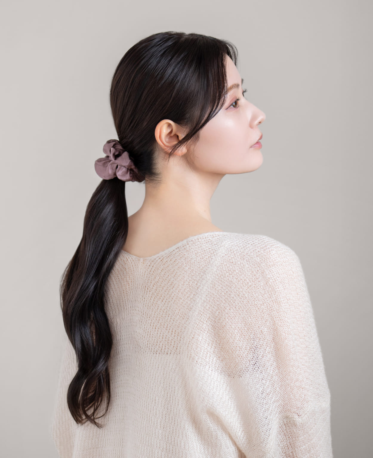 すべすべ質感で摩擦レスのシルクは、結んだ髪から外す時もするん! 絡まりにくいから無理に引っ張ることもなく、抜け毛も減らせます。