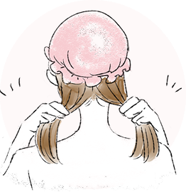 毛先をヘアケアキャップに入れ込み、そのまま前に持ってきてかぶります。