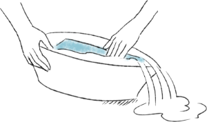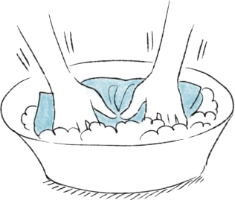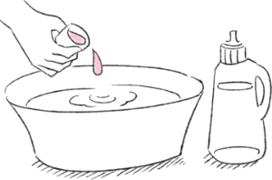 水または30℃以下のぬるま湯に中性洗剤もしくはシルク専用洗剤を溶かします。