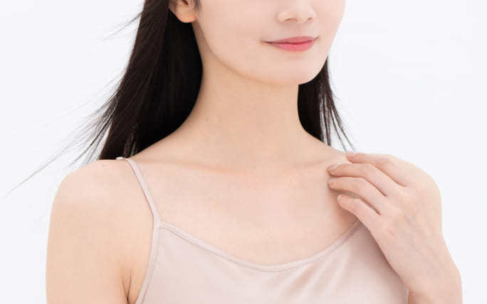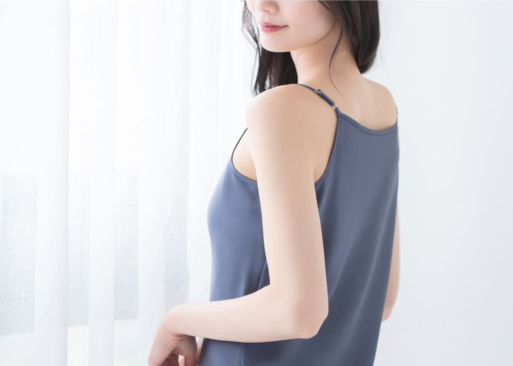 シルクはお肌への刺激や摩擦ダメージが少ないことが特徴です。また汗ムレやベタつきが気になりにくいメリットも。お肌に刺激を与える化学繊維だと、背中ニキビや肌荒れ・かぶれを引き起こしてしまうという方にも、シルク100%のインナーをおすすめします。