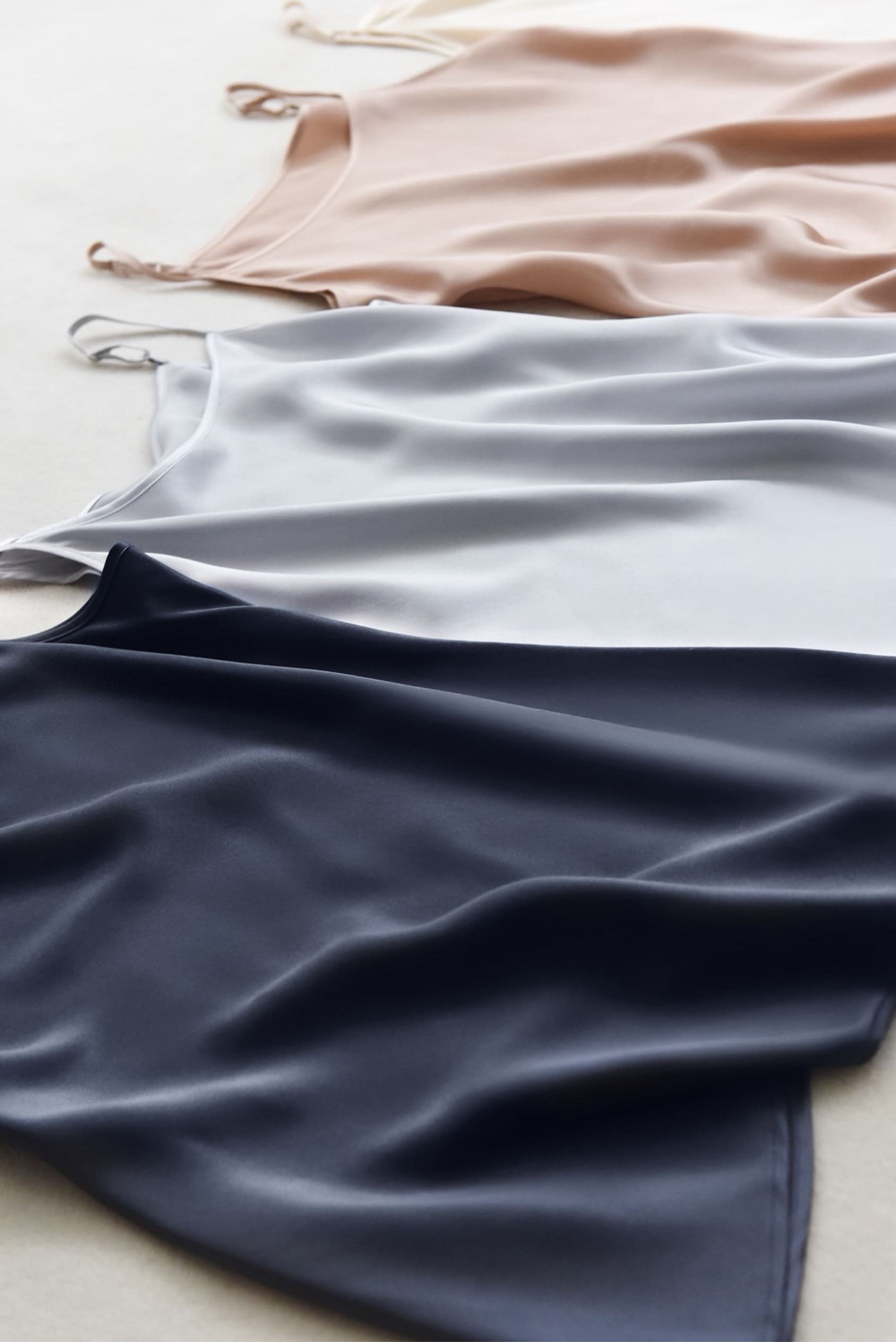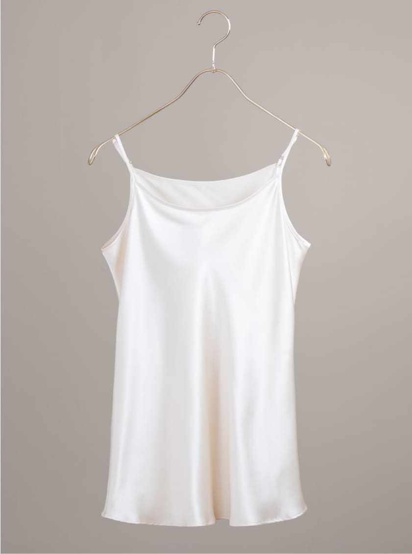 シルク100%の朱子織(サテン)生地はストレッチ性がないため、サイズ選びの際はいつもよりワンサイズ大きめを選ぶことをおすすめします。詳しいサイズは商品の詳細ページをご覧ください。