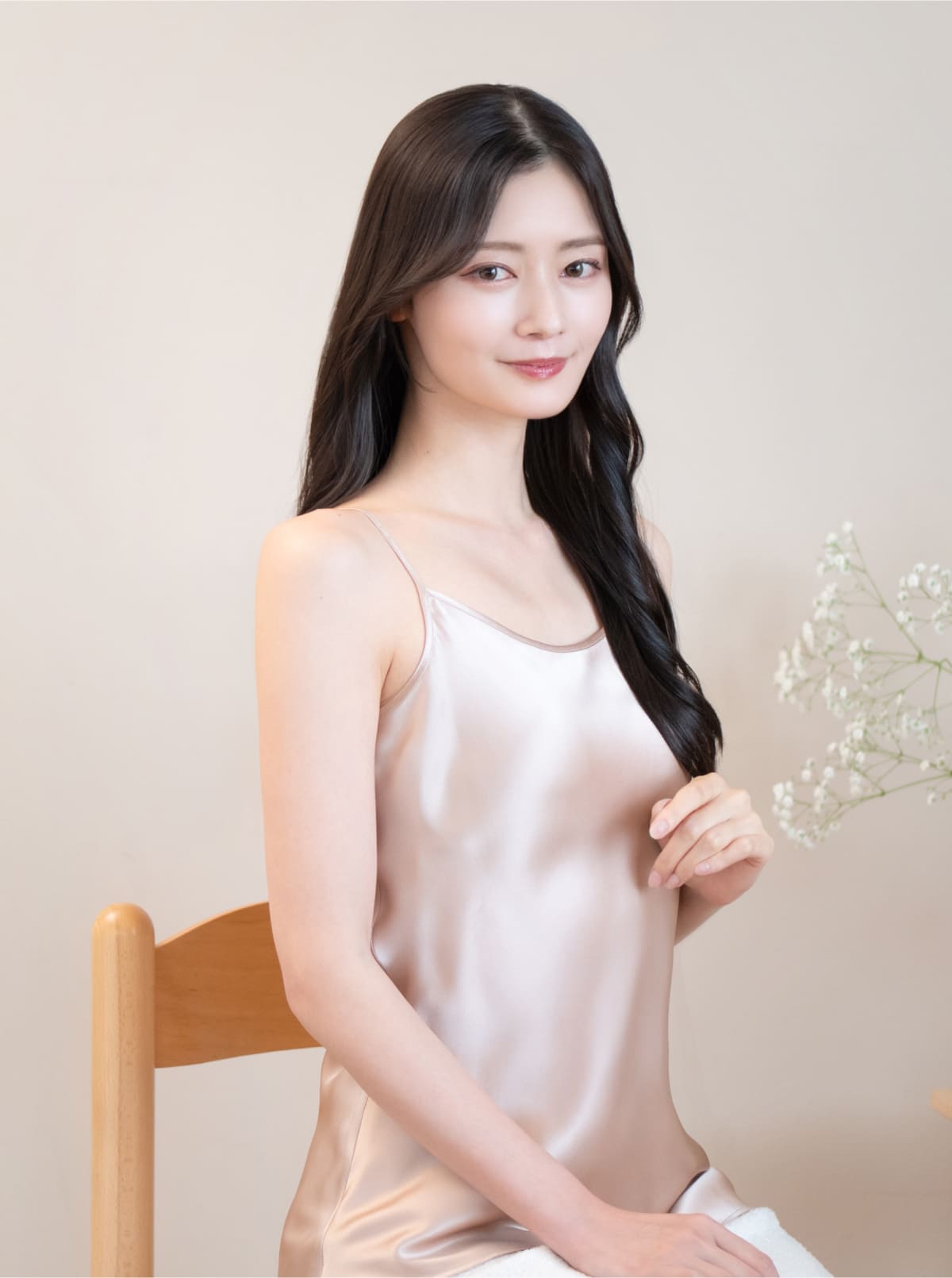 保湿性の高さもシルクの魅力。肌表面のうるおいをキープしてくれて、まるでスキンケアするような感覚で着られます。