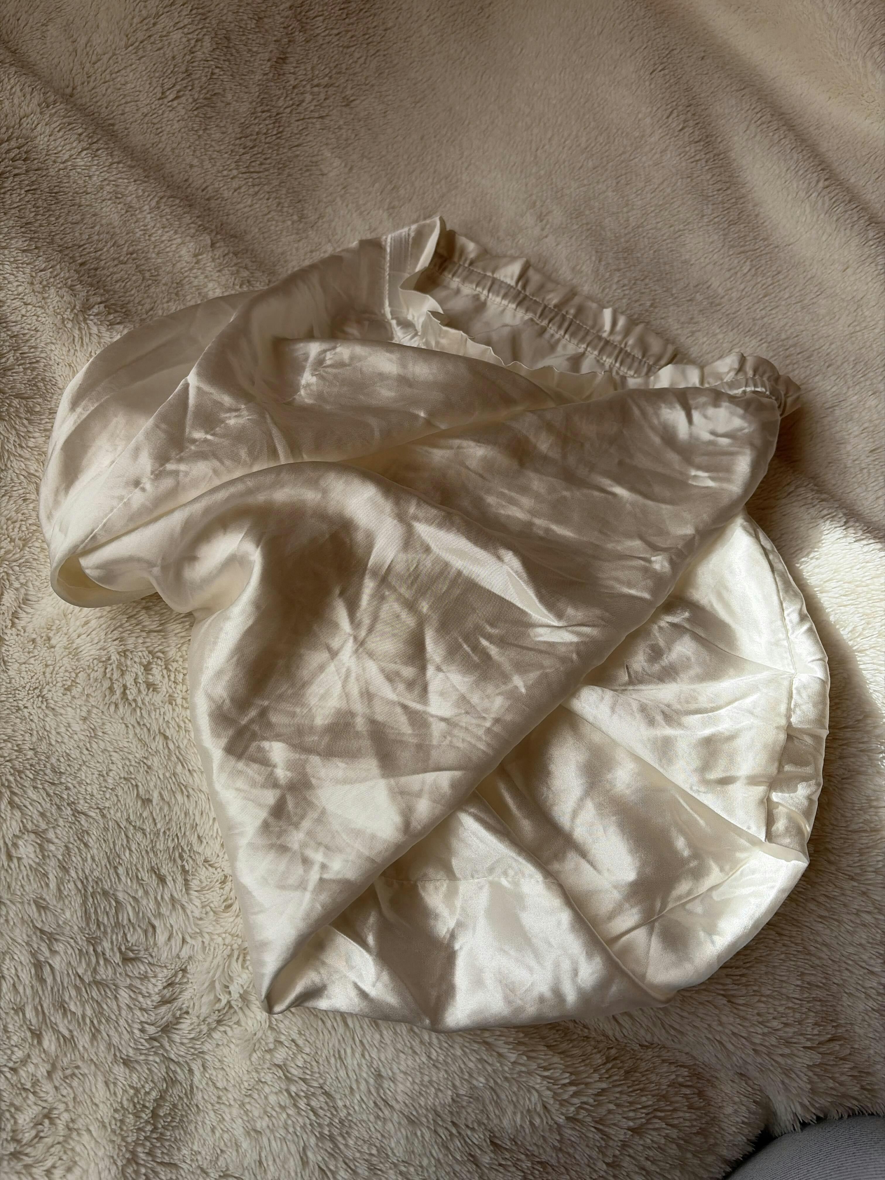 頭をすっぽり包み込むことで、シルクの保湿力も